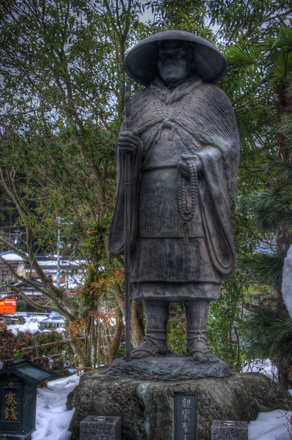 ↑これがカヤの実を植えたという親鸞聖人の銅像(了玄寺)