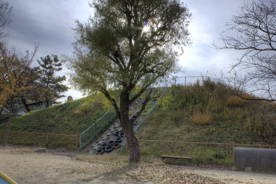 公園側を見下ろす。登って遊べるようになっている