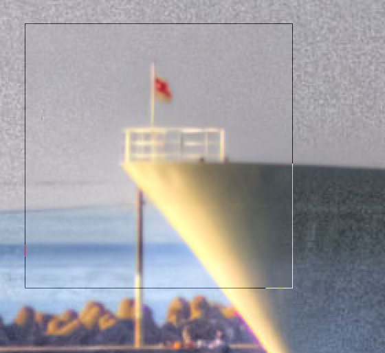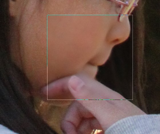 ISO2500で撮影した画像は以下の通り(枠内がNRした部分)。肌の部分が滑らかになっているのに、輪郭は比較的シャープに保たれています。スバラシイ!!