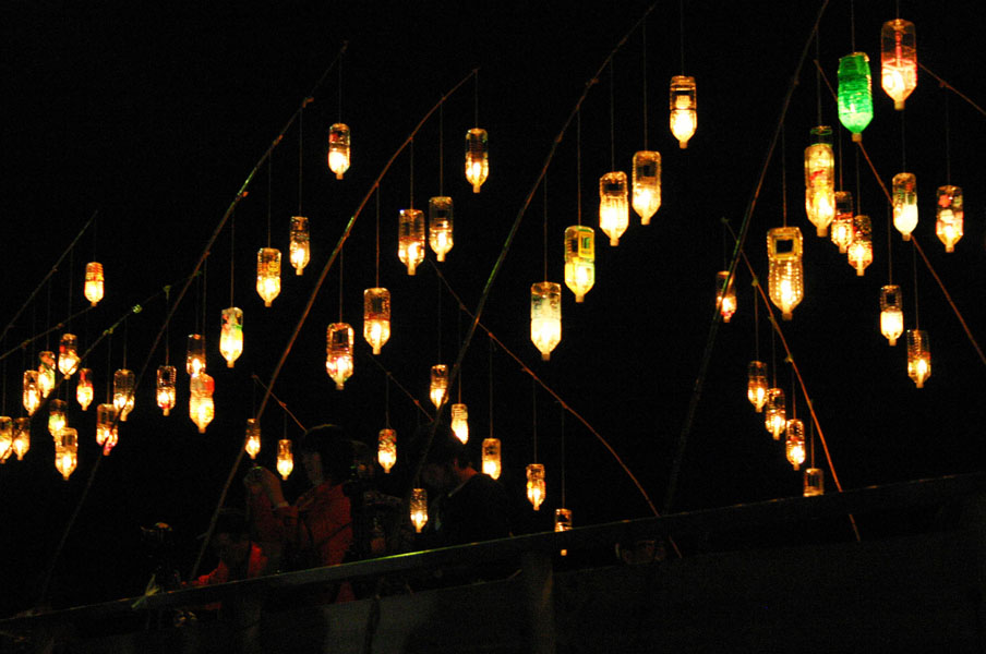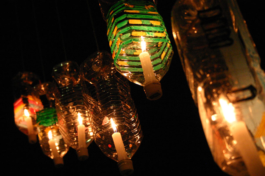橋の上にはアーチ上にぶら下がった、ペットボトルキャンドルが飾ってありました