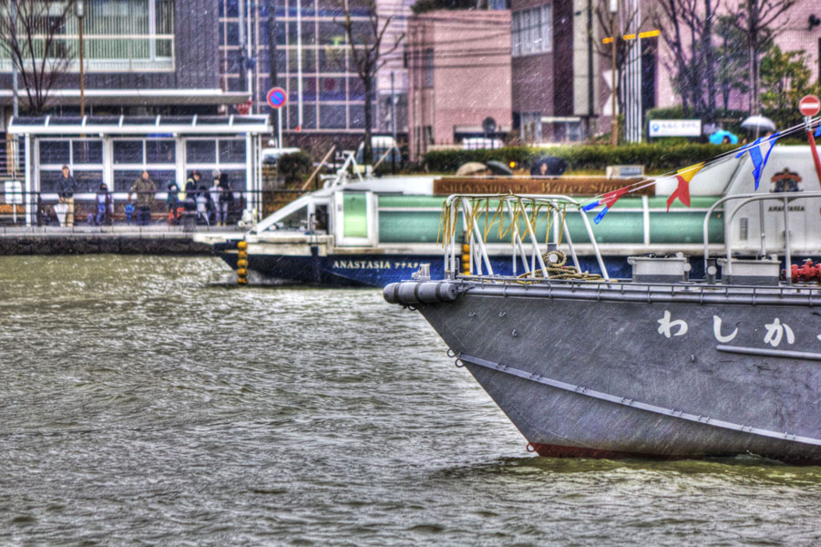 奥の船は、水上バス信濃川ウォーターシャトルの「アナスタシア号」です