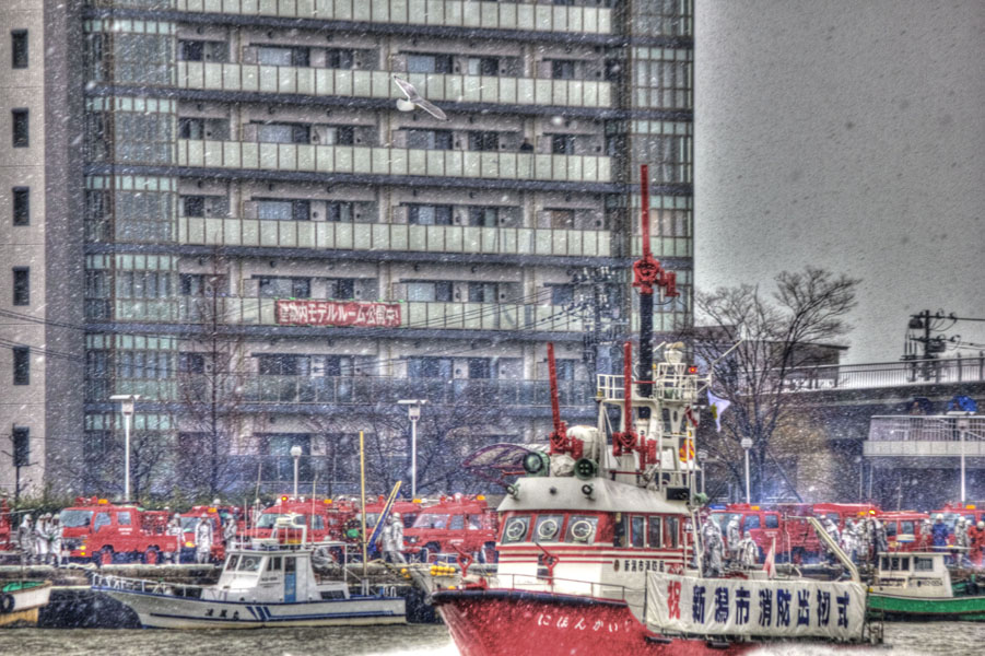 午前中、万代橋下流で行われた消防出初式に行ってきました