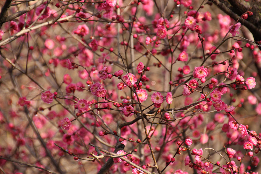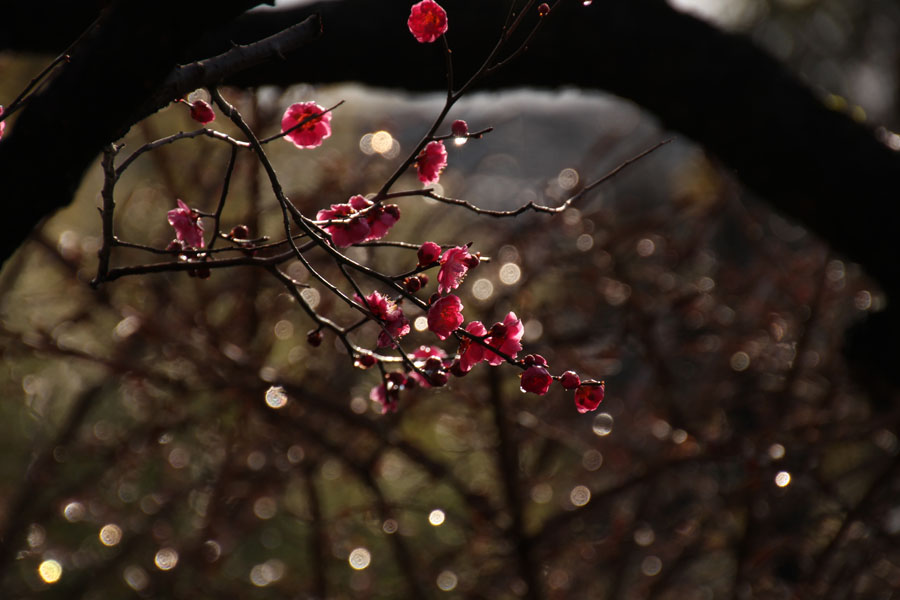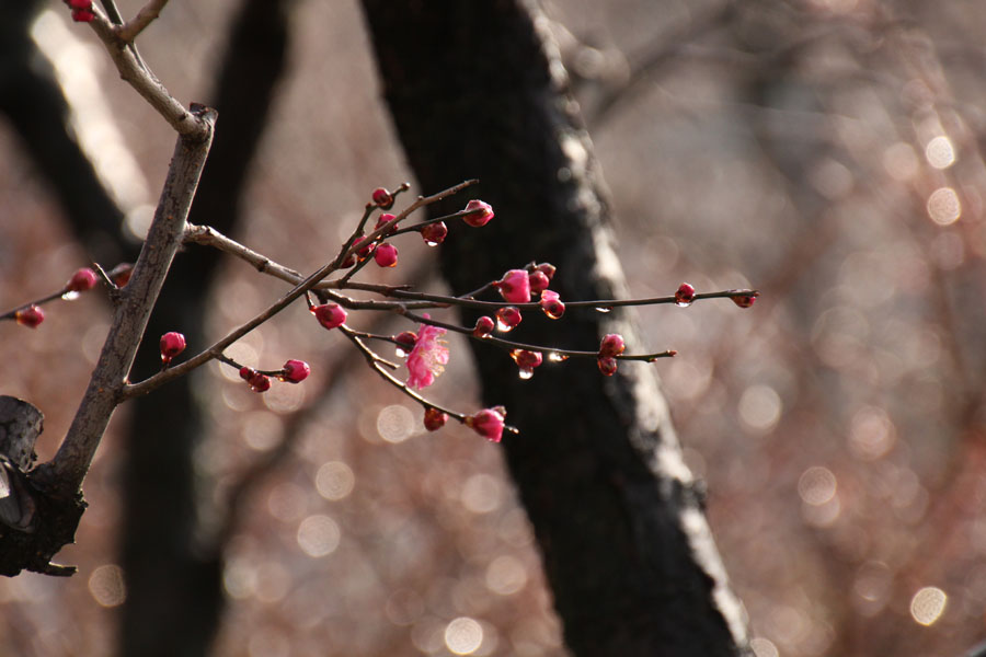 ↑後ろの丸ボケも枝や花にくっついた雫です