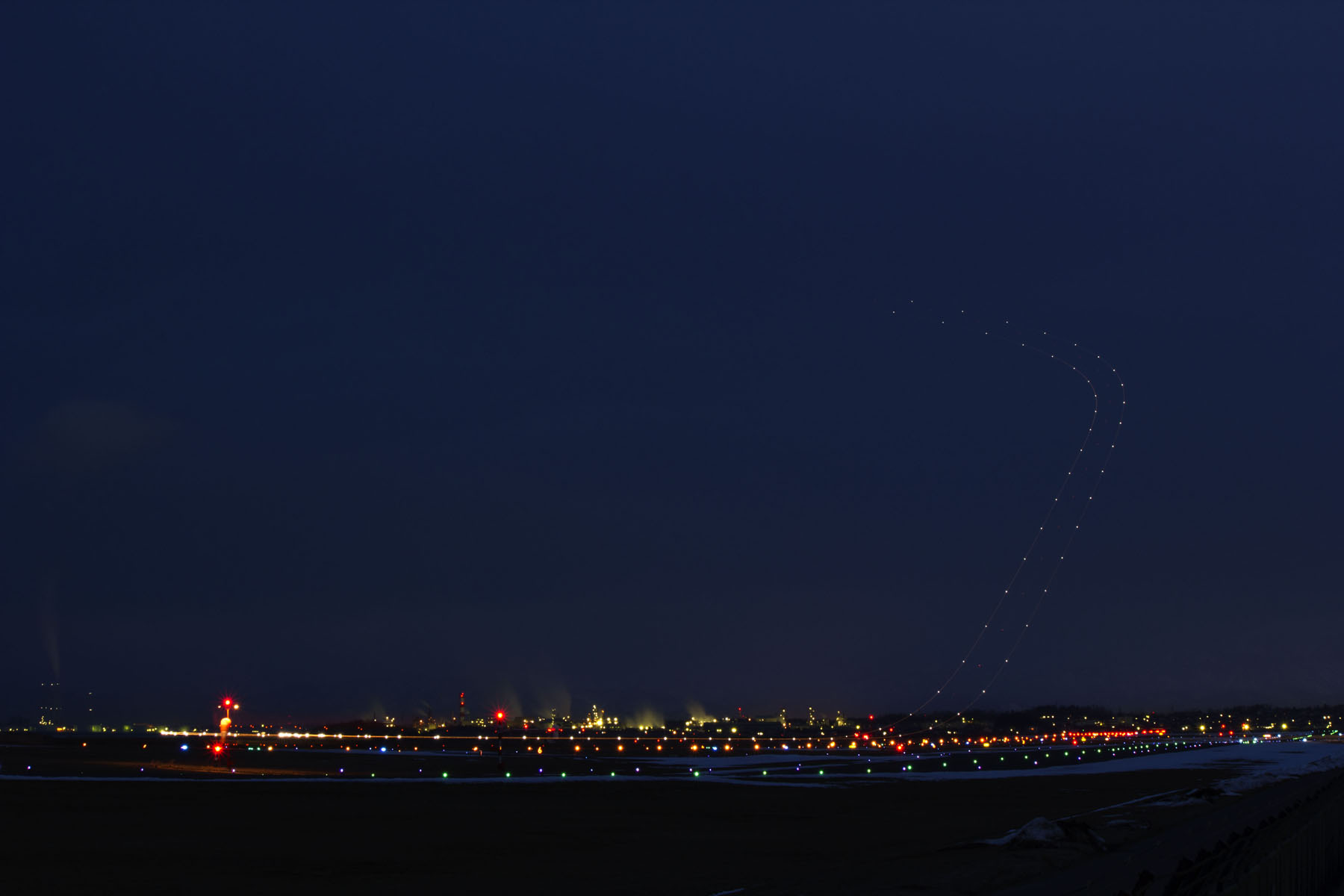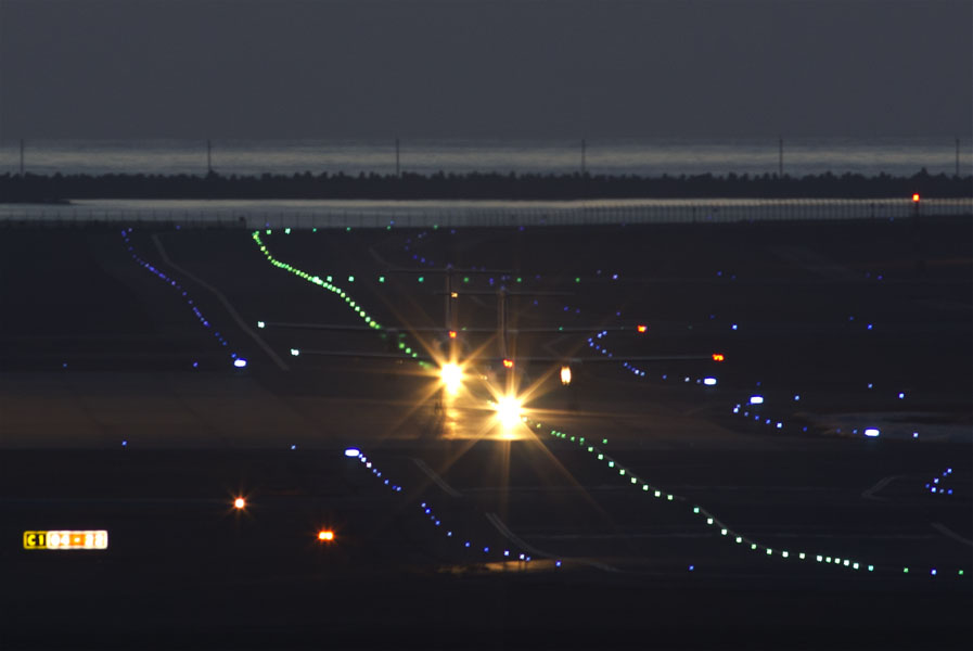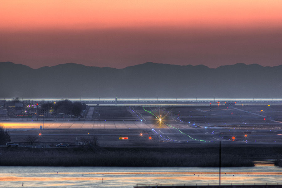 憧れの黄昏空港ショット。タキシー灯ペカーっが萌えポイント
