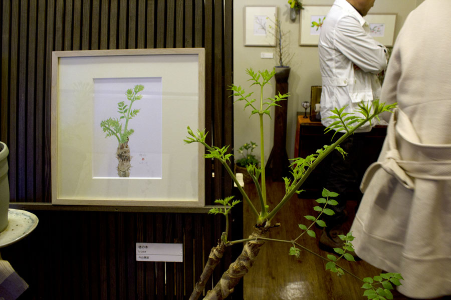 水彩画で描かれた花と一緒に、本物の花が生けてあります(この展示の仕方がすばらしい)