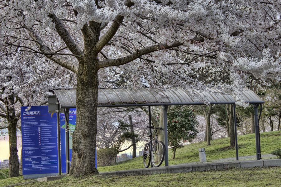もう隙間無いかと思いましたが、運良く桜の木の裏が開いていたので、これが撮れました