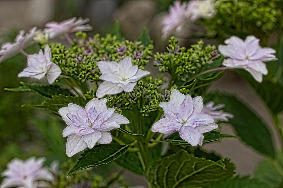 道端に見つけたあじさいの株に、なにやら動くものが。。。