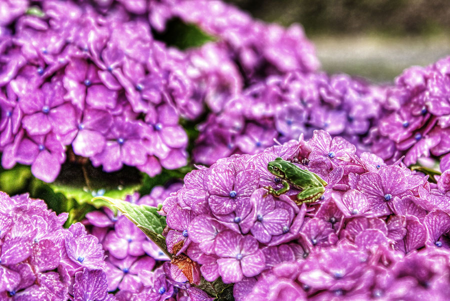 よく見ると、アマガエルがびっしりと、ちょっと気持ち悪いんですが、良い組み合わせ♪