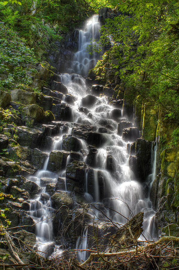 かなりの落差と、柱状節理を削って出来た滝は、階段状に落ち非常に美しい
