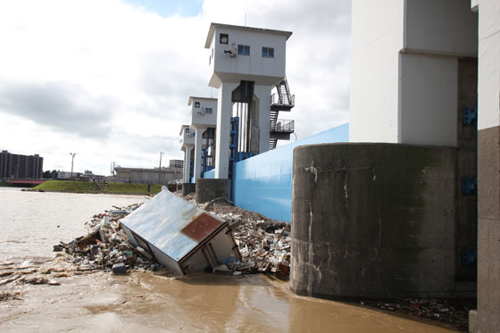 水門に漂流物が衝突し、時よりゴーンという大きな音を立てていました