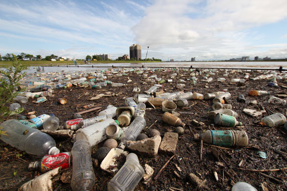 ↑冠水した河川敷には、ペットボトルが吹き溜まりになってました