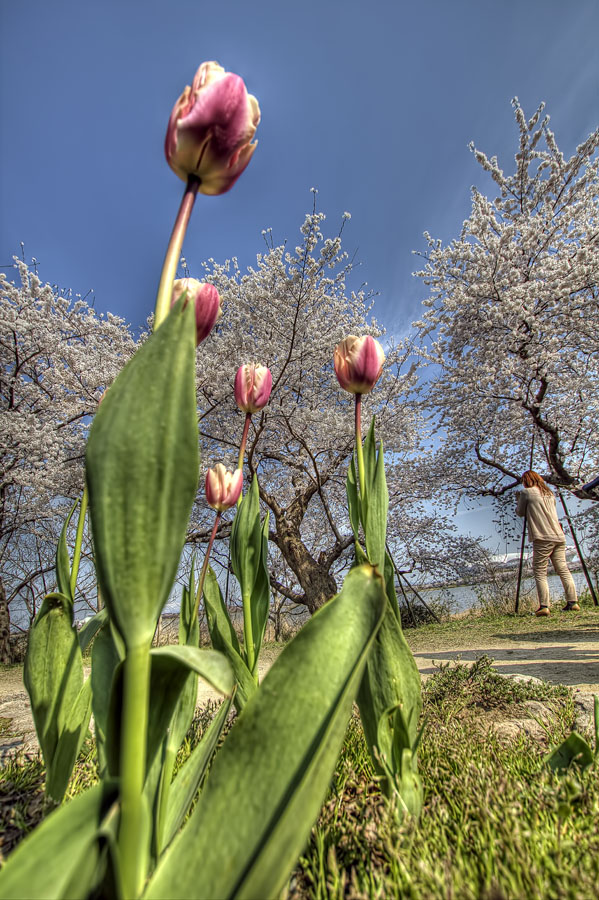 ひと目も気にせず寝転びました。手前のチューリップにピンが来てないのが残念ですが、構図的には頑張ったと思います。