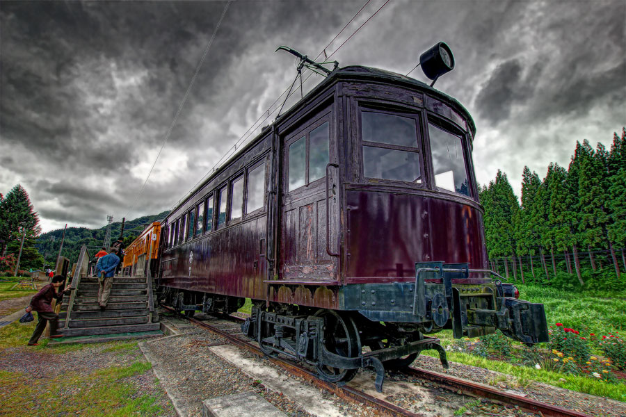 かつて加茂⇔五泉間を結んでいた、蒲原鉄道の保存車両です。加茂⇔村松間は二十年以上前に、村松⇔五泉間は十数年前に廃線になりました。この車両は県内最古の木造車両ということで、確かに禿げた塗装部分から樹肌が見えます。大正12年製造とパネルにあるとおり、外も中も大正レトロな雰囲気が漂います。