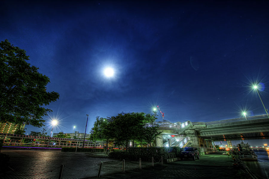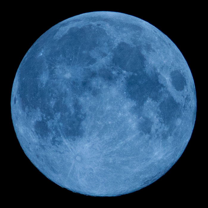 せっかくなので満月時刻を調べ、ジャスト満月になった瞬間(22:58)の月を撮って(上)みました。RAWで撮ってホワイトバランス=タングステンにして蒼くしています。