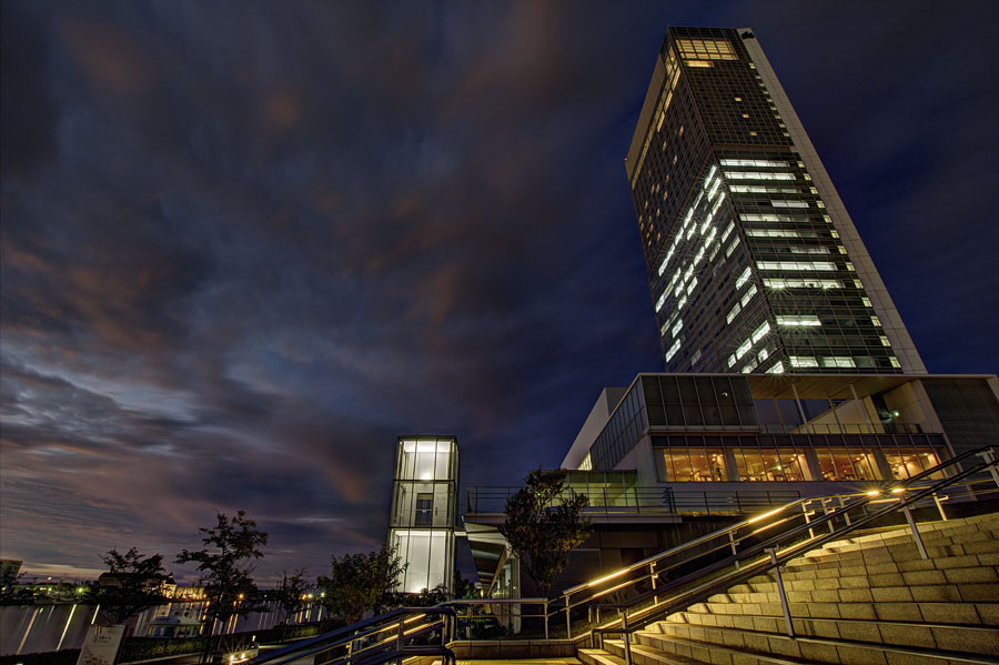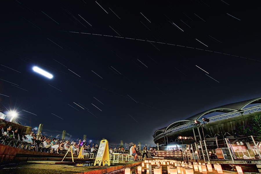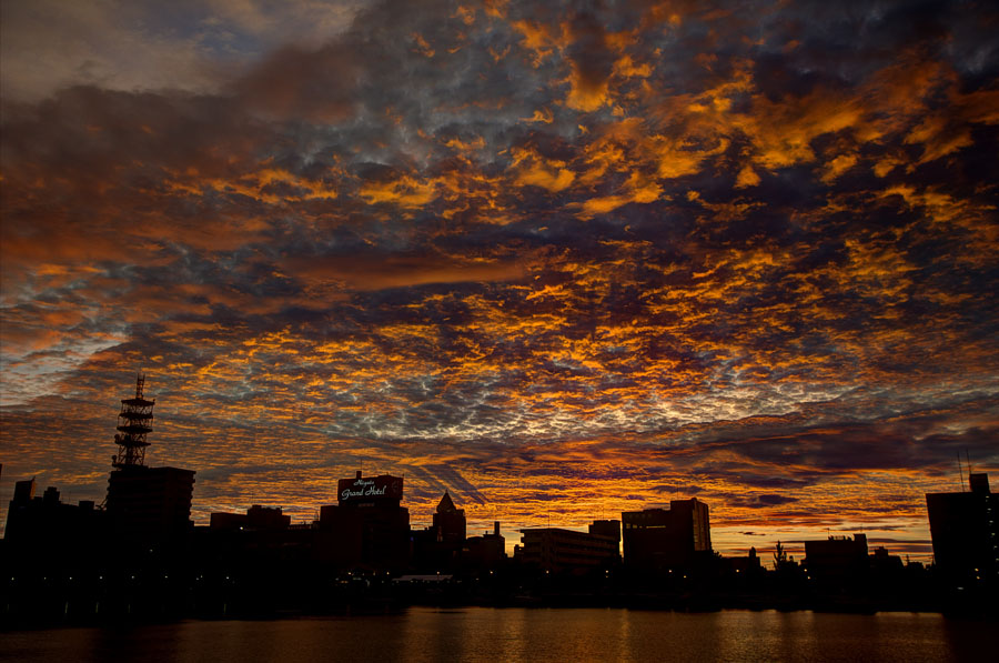 下は「ブルームーンの出」です。日和山展望台で撮っていましたが、バックの美しい夕陽も撮らずに街のほうに望遠向けているので、「何撮ってるんですか?」って聞かれてしまいました。ブルームーンの説明をして、昇ってくる位置はあの辺ですって、でも夏の雲があってしばらく時間が掛かりました。街並みと一緒に撮るのが狙いでしたが、残念ながらそうさせてもらえませんでした。
