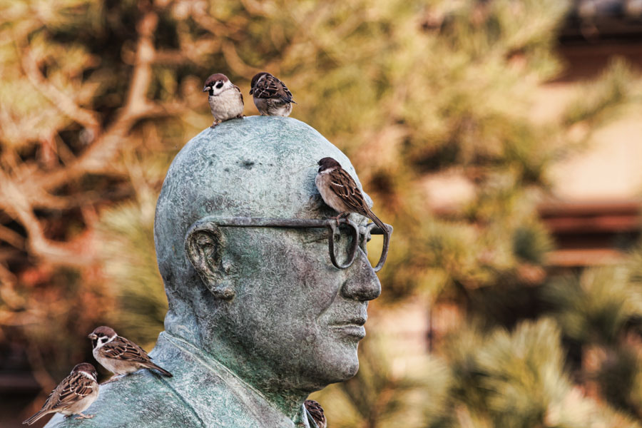 Tags #銅像 #生き物 #鳥類 #スズメ #県知事 #メガネ