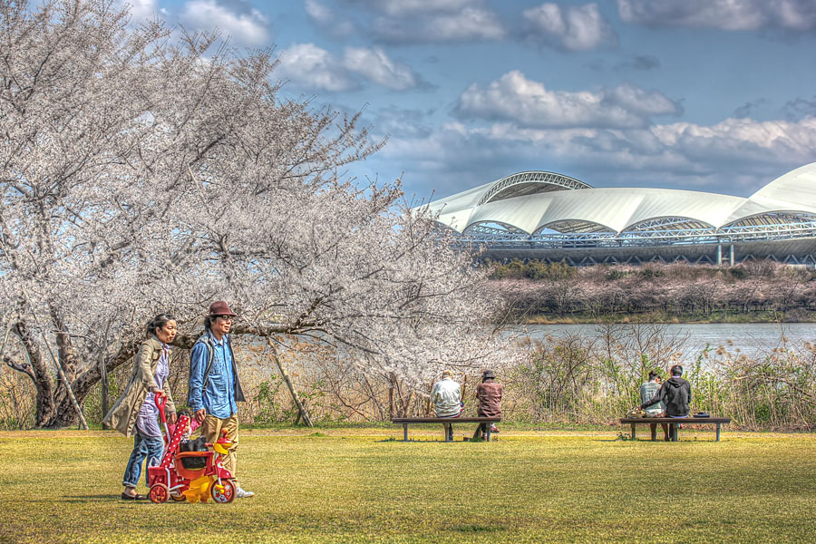 若者カップルと老夫婦の対比で後ろ姿を撮ろうとしてたら、若夫婦も通りかかったというお気に入りショット。子供がまだなカップル、子供が巣立った老夫婦、子育て中の若夫婦、そして子供から相手にされなくなった私、と。素材的には不満足で桜が活きてないのが残念です。というか、桜、難しすぎ。