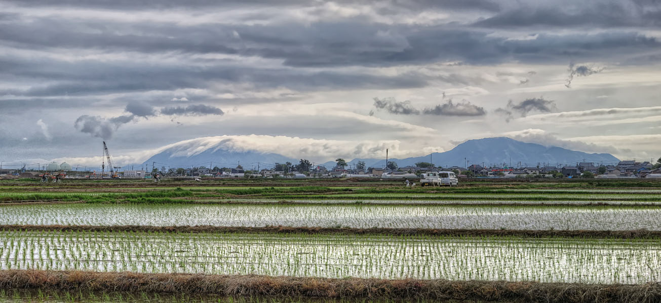 Tags #山 #弥彦山 #角田山 #水田 #雲 #パノラマ #大気光学現象 #幻日