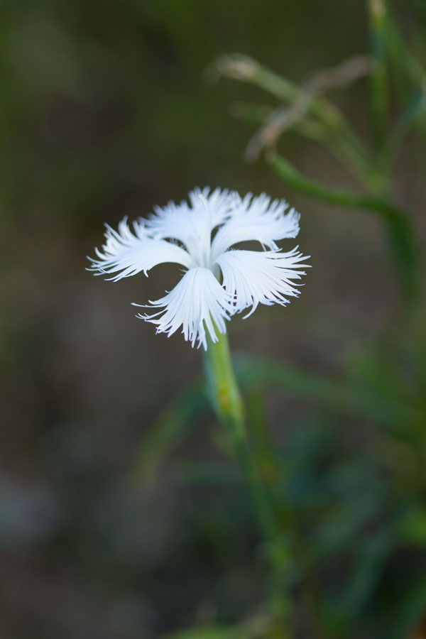 ピンクのの道挟んで反対側に咲いていた白いナデシコ。