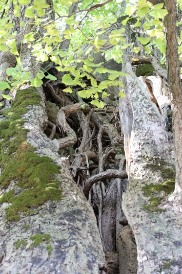 ↑上の方の空洞には、自身の根っこで埋め尽くされています。