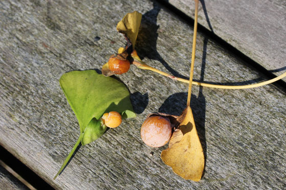 ひとしきり撮影し終えて、帰り支度をしていたところ、先ほど興味深いお話を聞かせていただいた地元の方が戻って来られて、このオハツキイチョウから採れた銀杏をひと袋頂いちゃいました。いや〜、ありがとうございます。宣伝してくださいとのことですので、多めに写真を載せちゃいます(^^)