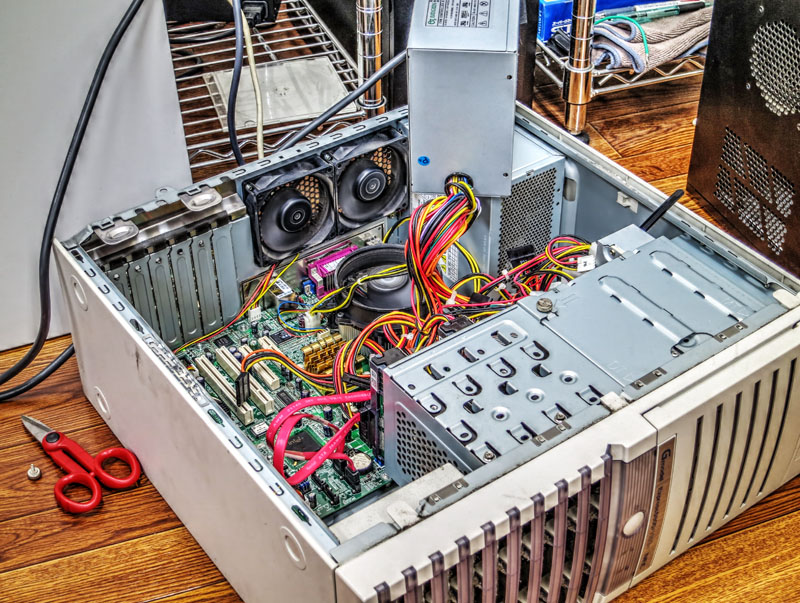 サーバー機の電源ユニットが壊れて、別のPCのものを取り付けて動かしています。大急ぎで取り付けたので、ビス止めもせず、乗っけてるだけです。ファンの振動で基板に落下しないかヒヤヒヤものですが、しばらく構ってあげられないかな。