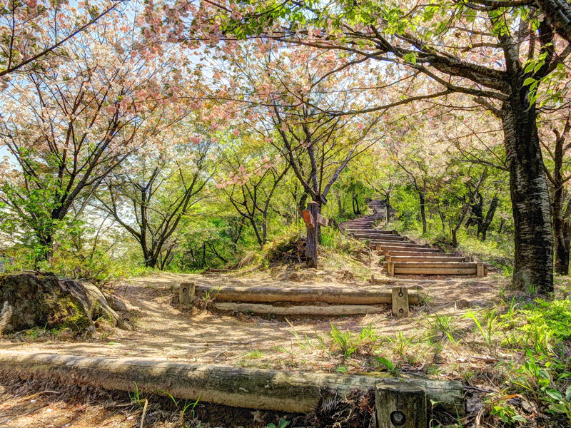 ここはずっと山桜の名所だと思っていましたが、他にもなんと109品種もの様々なサクラが楽しめる場所でした。この日は、数珠掛桜(越後七不思議のひとつ)、御衣黄、鬱金などの八重桜系が見頃でした。