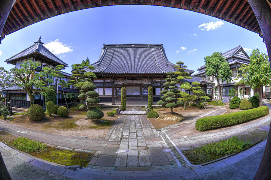 加茂市にある定光寺は、あのスティーブ・ジョブズが禅の教えを請うた乙川弘文の生家にあたり、1986年にはジョブズ自身も訪れたことがあるそうです(新潟日報2013年10月5日の記事)。彼もここに立って同じ景色を見たのでしょうか。魚眼レンズが作る歪みを、目の内側からの景色として表現してみました。