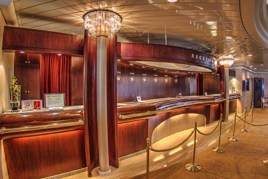こちらは、メインデッキのレセプション(ホテルで言うフロント)という施設です。24時間、日本人スタッフが対応してくれるそうです。大勢のスタッフが乗り込んでいますが、大半は外国人スタッフでフィリピン人が多いって言ってたかな。一度乗り込むと、何か月も乗船しっぱなしの勤務になるそうです。