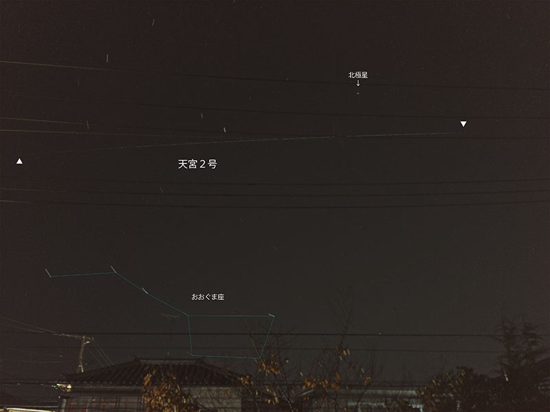 [夜空・天文] イリジウムフレアと天宮2号 天体観測人工衛星イリジウム天宮2号カシオペヤ座北斗七星 2016年11月7日 追記:X4 4枚比較明合成 連続で通過するようでしたので、iPhoneで撮影してみました。イリジウムフレアのほうは、予想光度-7.8ということでほぼ最大級の明るさでした、実際にかなり明るかったです。 天宮2号(中国の宇宙ステーション)のほうは、それほど明るくなく、気づくのがだいぶ遅れました。写真でも電線に重なって分かり難いですが、一応写っています。 11/07 新潟市西区 iPhone6s+(NightCap Pro) JPG×1→Photoshop Tags #天体観測 #人工衛星 #イリジウム #天宮2号 #カシオペヤ座 #北斗七星 ※この記事は「Yahoo!ブログ - HDRp」からの転載です 0 件のコメント