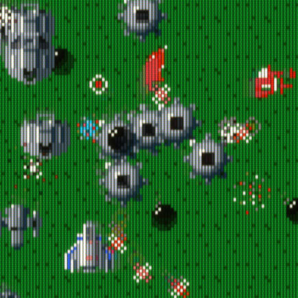 ではなぜ採用しなかったのか? という点についてはこうです。出現させるまでは簡単にできても、重ね合わせや当たり判定その他もろもろ、イレギュラーな使い方をするが故にその調整に掛かるコスト(コード量)が確保できなかったのでは無いでしょうか。爆発痕の下を潜ってしまうのは無視できても、健在な地上物の下を空中物が潜るのは明らかに変です。作ってみたはいいけど、こういった点を解消するために更にコード量がかさむとなれば、諦めるのも仕方がありません。