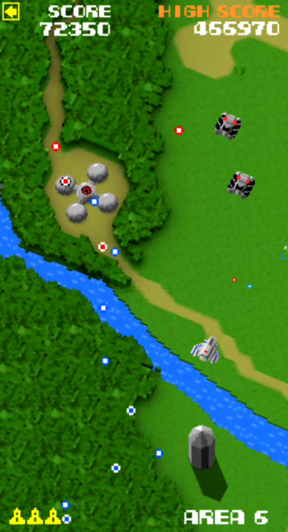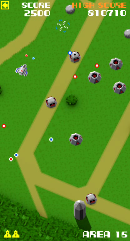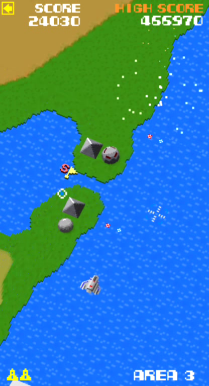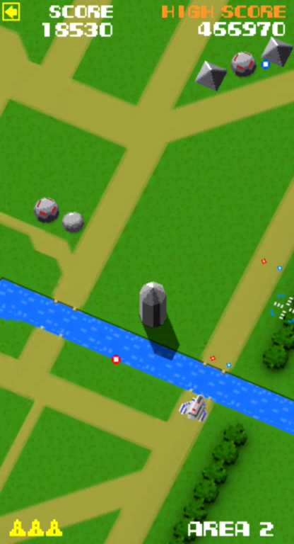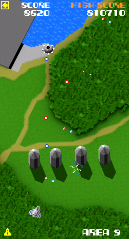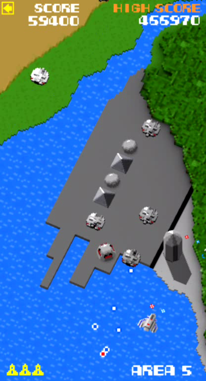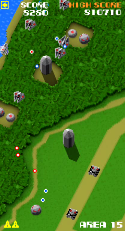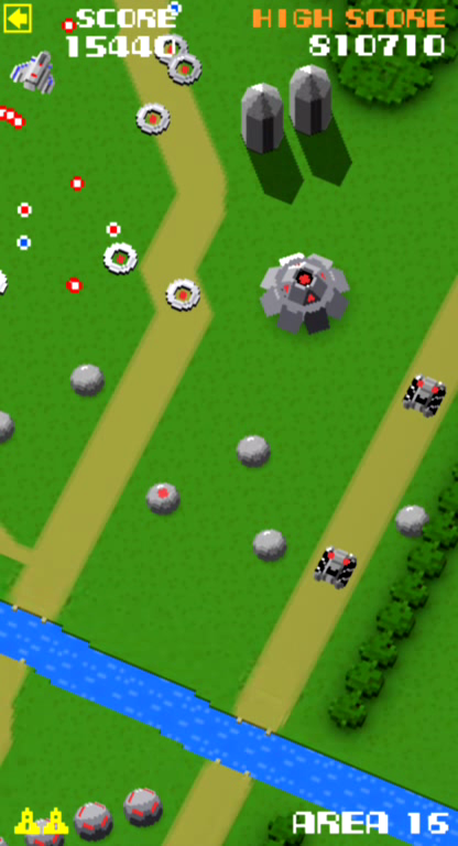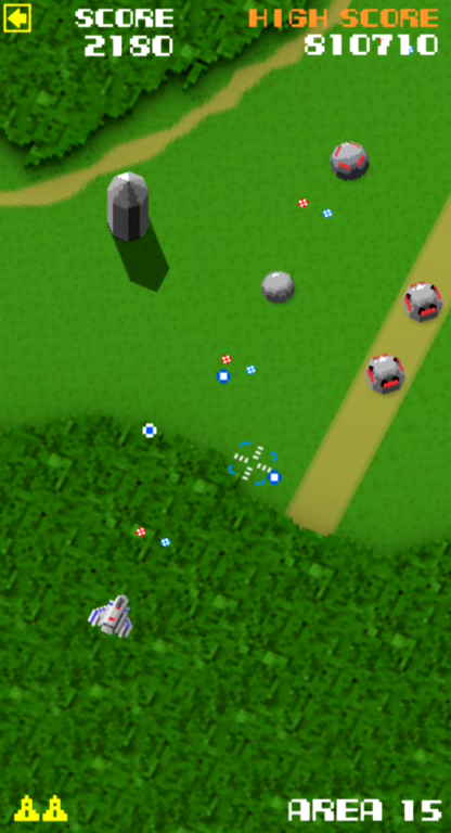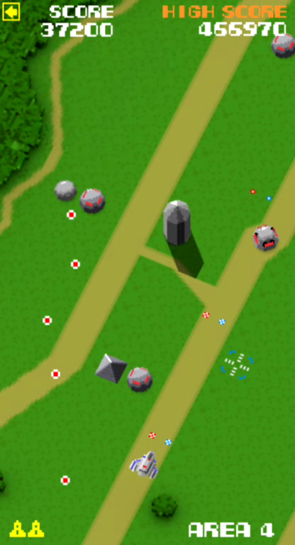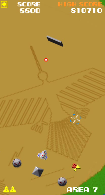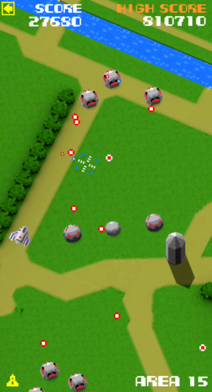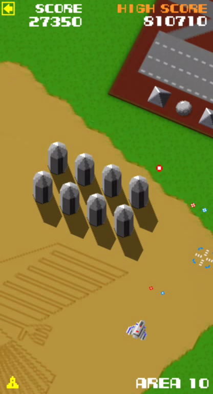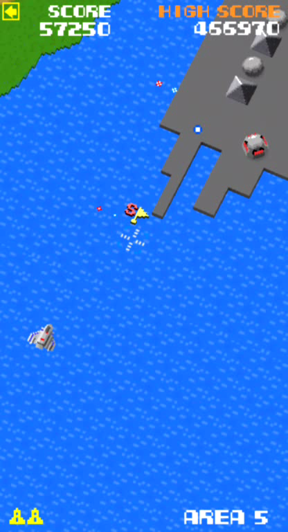 右側に配置された地上物が撃ちにくい(特にソル)ので慣れが必要だと思います。 同じゲーム内ですが縦スクロールバージョンとも地上物配置が異なるようです。