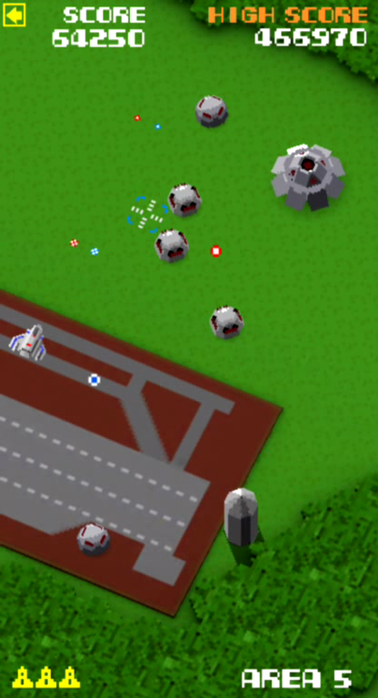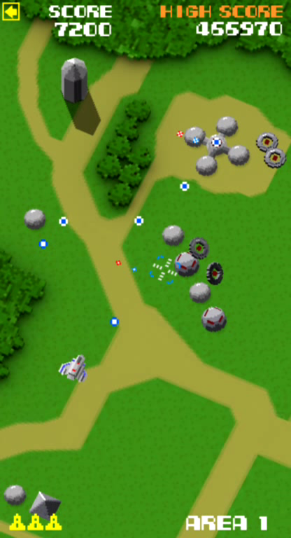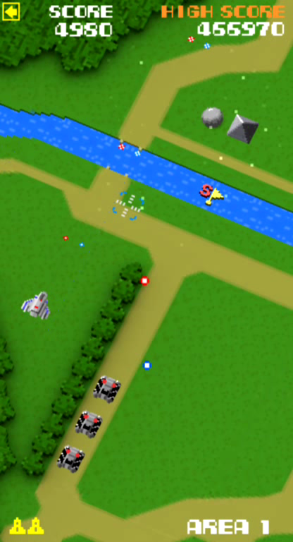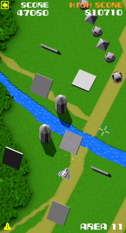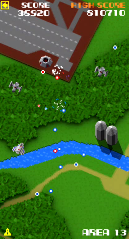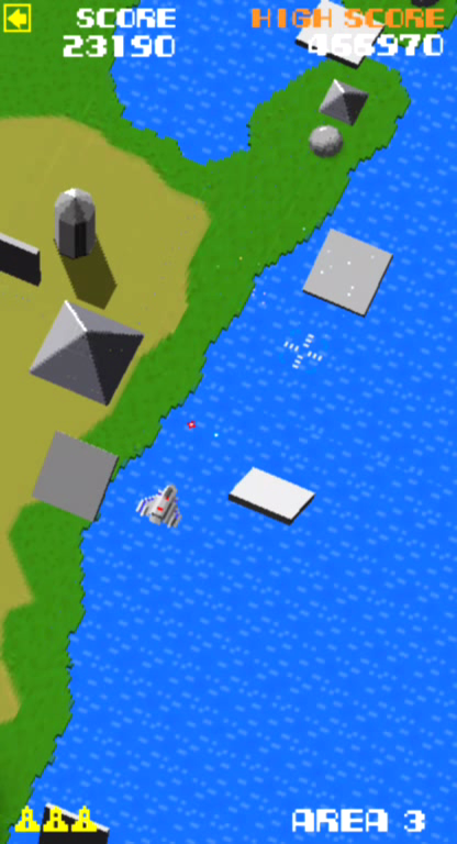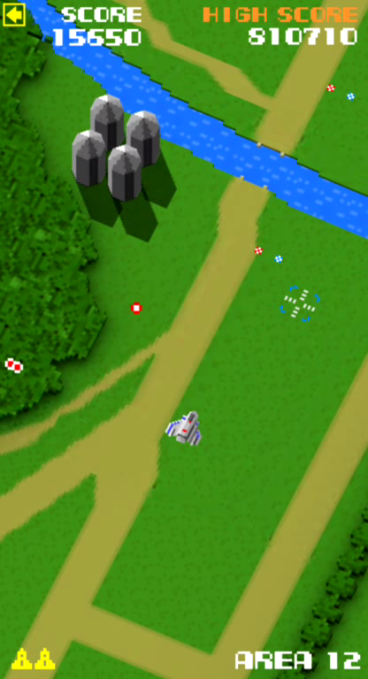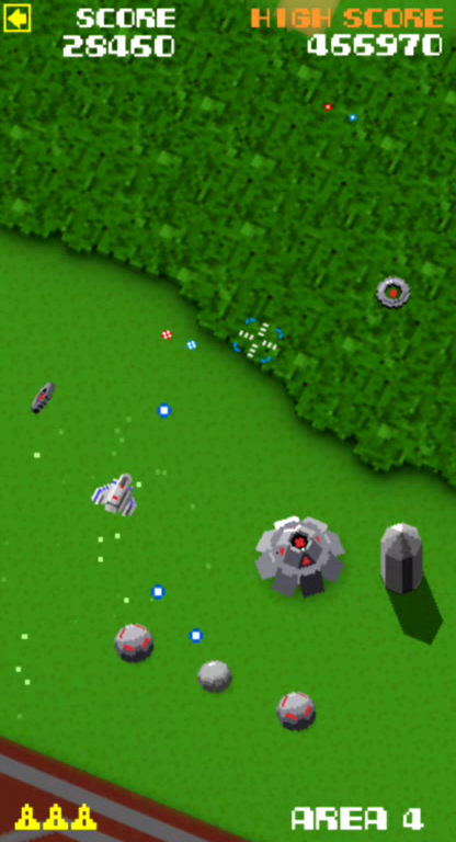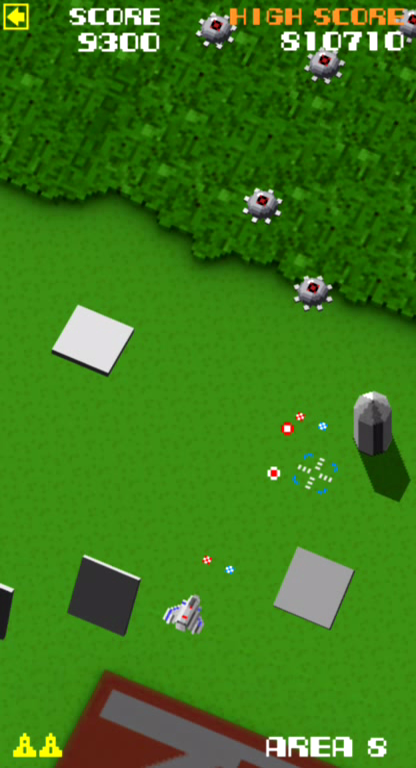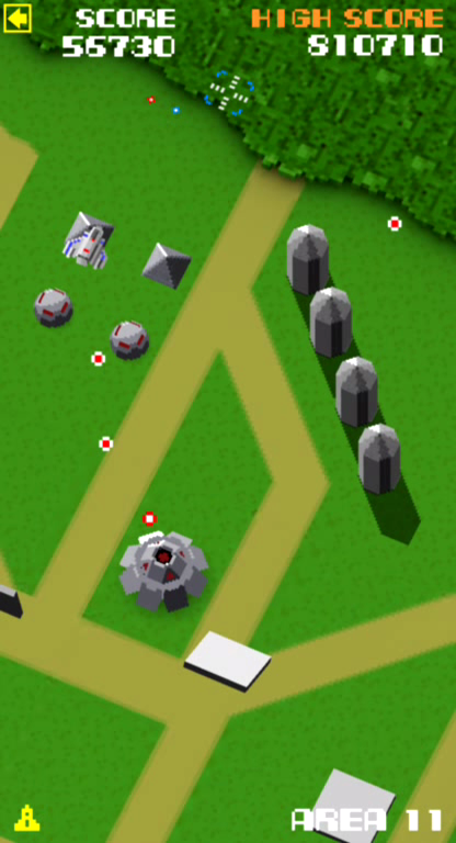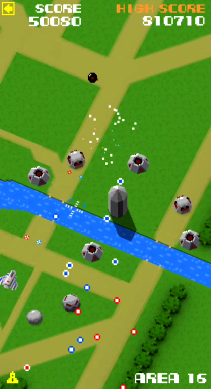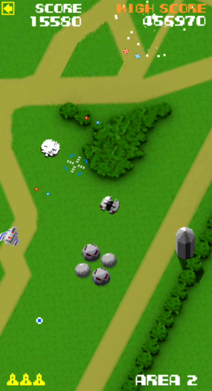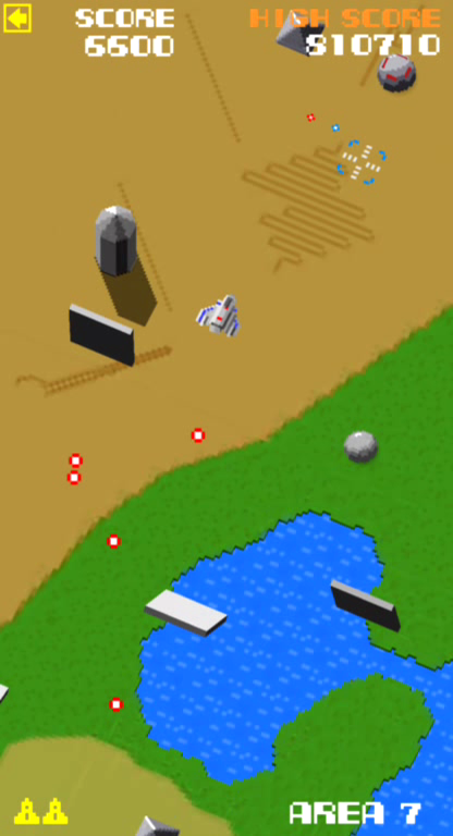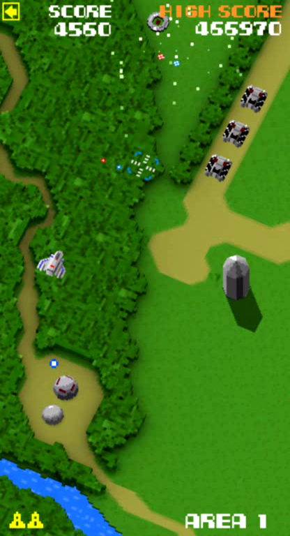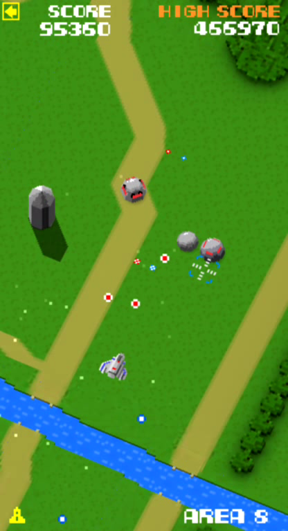右側に配置された地上物が撃ちにくい(特にソル)ので慣れが必要だと思います。 同じゲーム内ですが縦スクロールバージョンとも地上物配置が異なるようです。