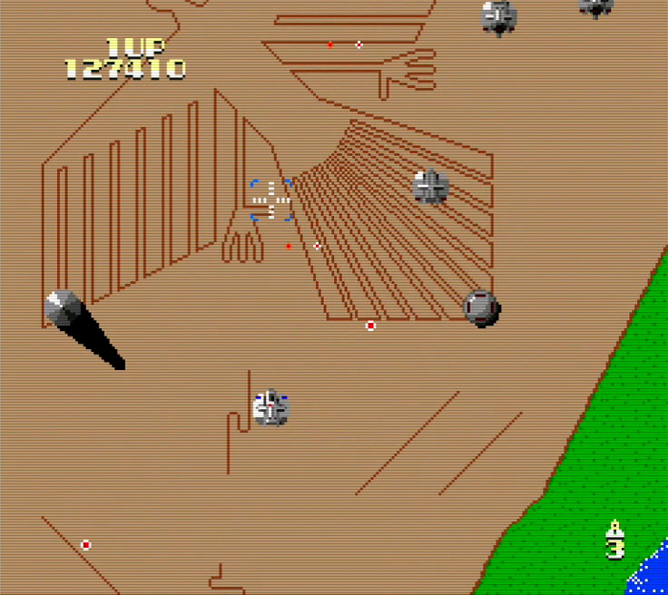 ラウンド3はソルが34本、スペシャルフラッグは1本で、すべてアーケード版と同じ位置になっています。 トータルでソルが45本、スペシャルフラッグが4本となるので、アーケード版のトータル本数と一致し、開発者の意図を感じるのでこれ以外は無いと思います。