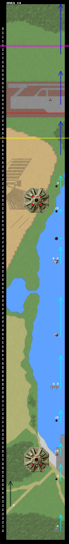 水色横線固定空中物の出現記載のキャラクタが出現する(1機のみ)