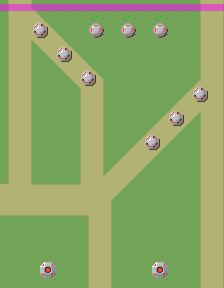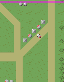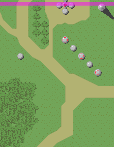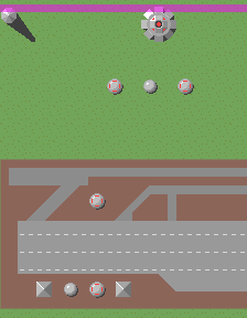 - ワールドマップの上端から156ドット目から8ドットの範囲がワープスポット(紫色の帯)です