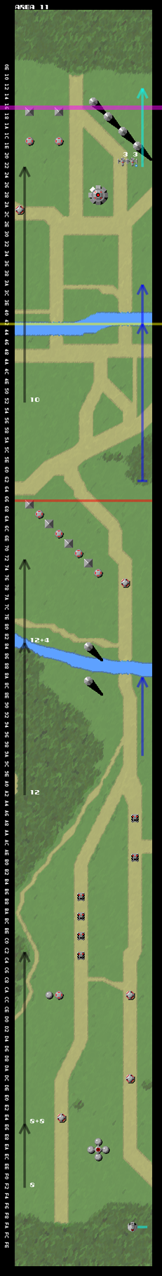 紫ゾーンワープスポット画面の上端がこの範囲に入っている瞬間にミスすると次のエリアをスキップする(爆発の瞬間に入っている必要がある)