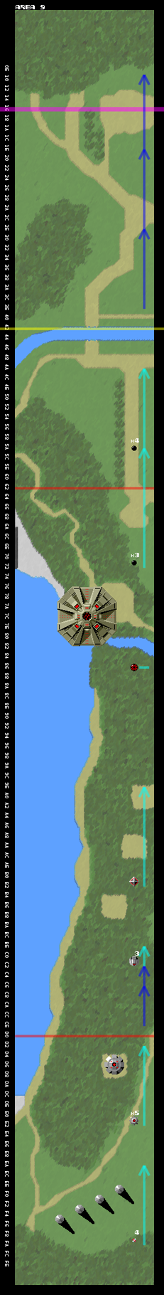 紫ゾーンワープスポット画面の上端がこの範囲に入っている瞬間にミスすると次のエリアをスキップする(爆発の瞬間に入っている必要がある)