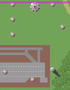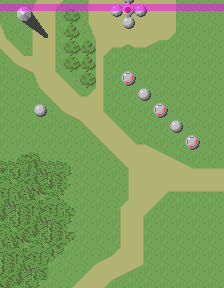 ワールドマップの上端から156ドット目から8ドットの範囲がワープスポット(紫色の帯)です